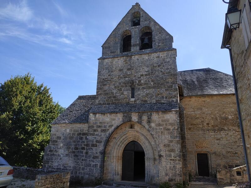 Eglise à clocher plat sur le porche, et clocher carré formant tour sur le choeur. Porche à trois arcades moulurées, et tête sculptée au-dessus. Edifice primitivement à une seule nef. Deux chapelles latérales. Petit chœur roman à chapiteaux sculptés. Au-dessus du choeur se trouve une pièce d'habitation. Ouvert tous les jours de 8h00 à 19h00. -