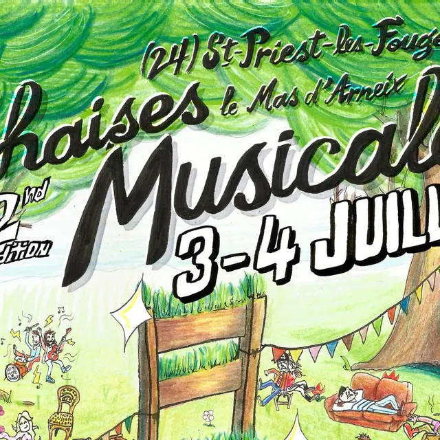 2 jours de festival convivial avec des ateliers créatifs et activités, des concerts et surtout : des jeux de chaises musicales géant en musique live. Le ou la meilleur.e "chaisiste musicaliste" aura la chance de remporter la chaise pelouse !
