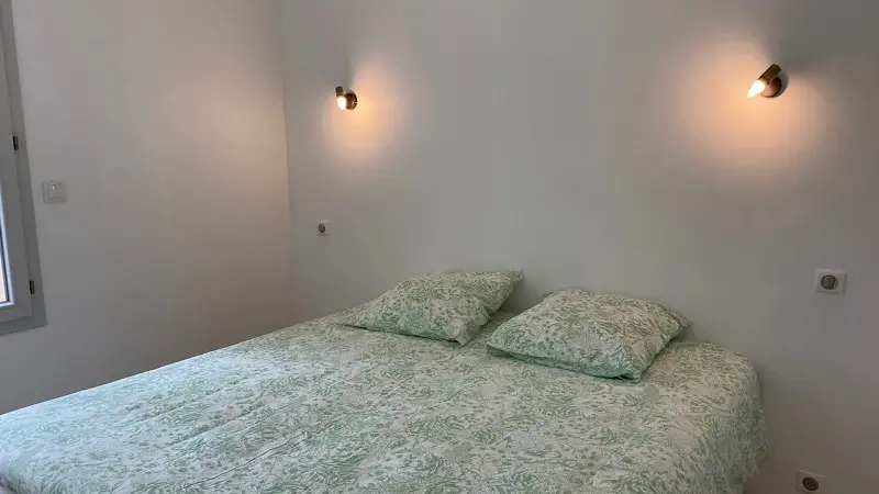 2 chambres avec lits 180x200, canapé-lit, salle à manger, salle d’eau ,WC séparé. Cuisine américaine toute équipée. Lave-linge et sèche-linge. Grande terrasse avec piscine.