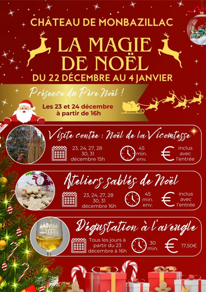 Pendant les vacances de Noël, profitez d’une après-midi féérique au Château de Monbazillac. Château décoré et animations pour petits et grands !