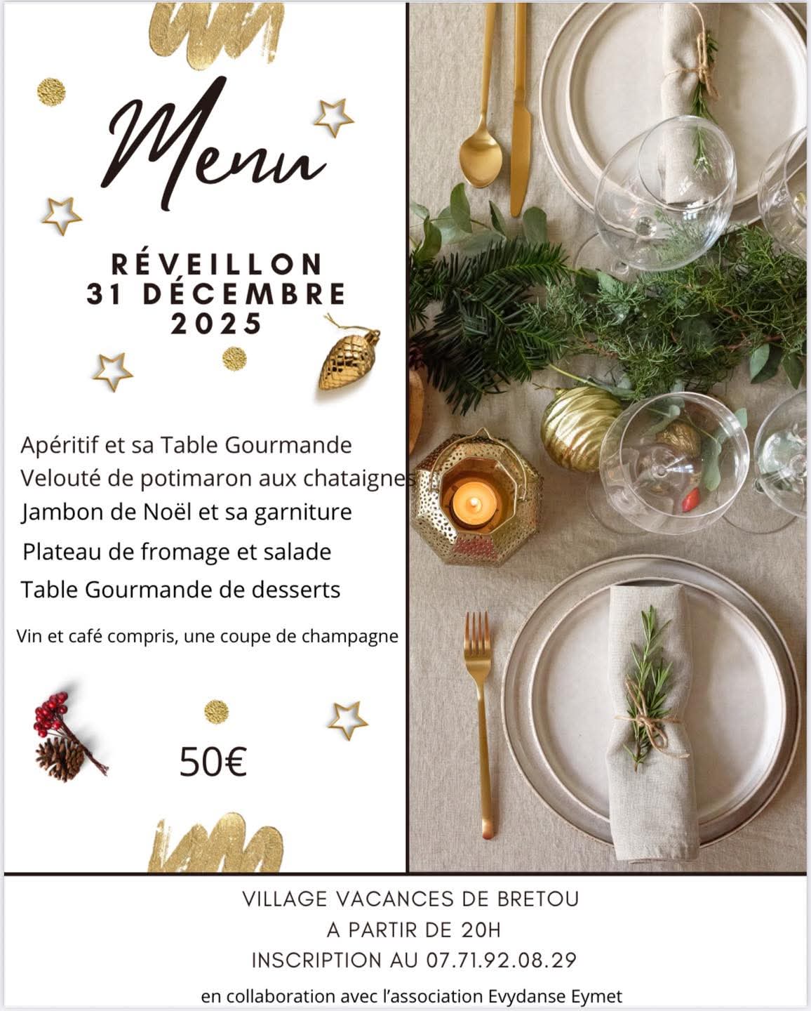En collaboration avec l'association Evydanse, le Village Vacances de Bretou vous propose une soirée festive pour le réveillon de la Saint-Sylvestre.