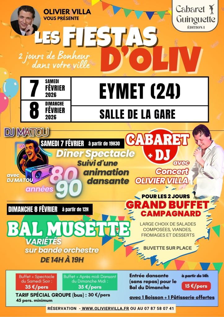 - Diner spectacle animé par Olivier Villa, artiste chanteur et organisateur de spectacle depuis 25 ans