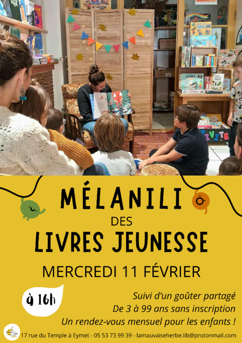 Avis à nos jeunes lecteur.ices : des lectures jeunesses seront proposées une fois par mois à la librairie par Mélanie !