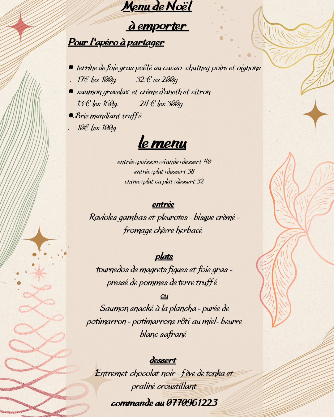 Menu de Noël à venir chercher sur place le 24 au matin au restaurant.