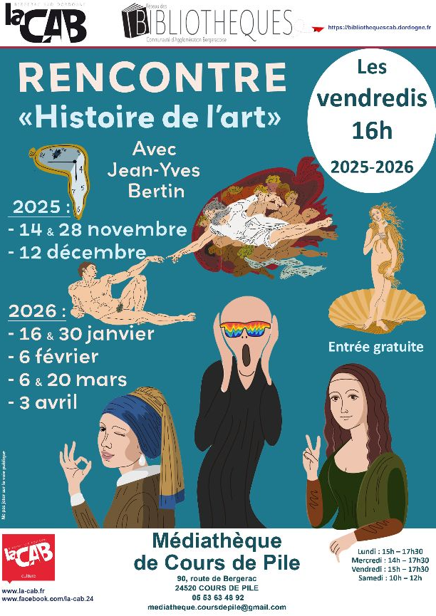 Venez assister à une rencontre autour de l’histoire de l’art à la médiathèque de Cours-de-Pile.