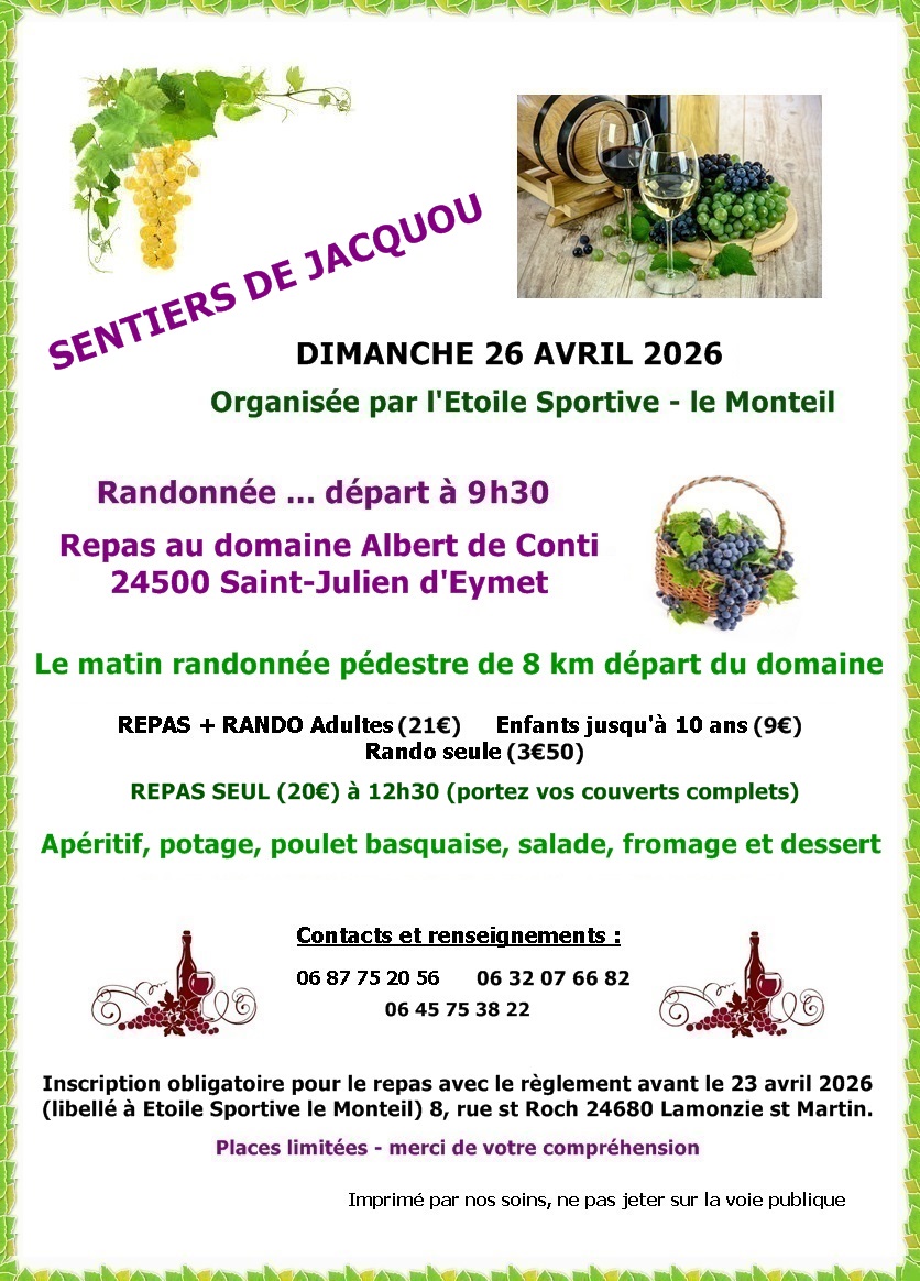 Sur inscription obligatoire pour le repas avec le règlement avant le 23 avril.