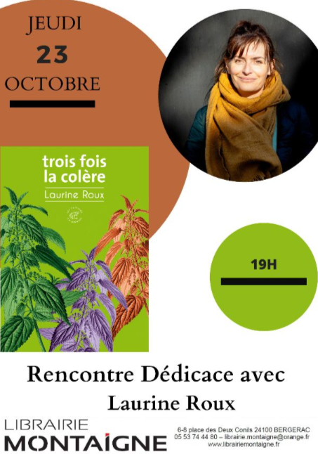 Laurine Roux viendra nous présenter son tout dernier roman "Trois fois la colère" aux éditions du Sonneur !