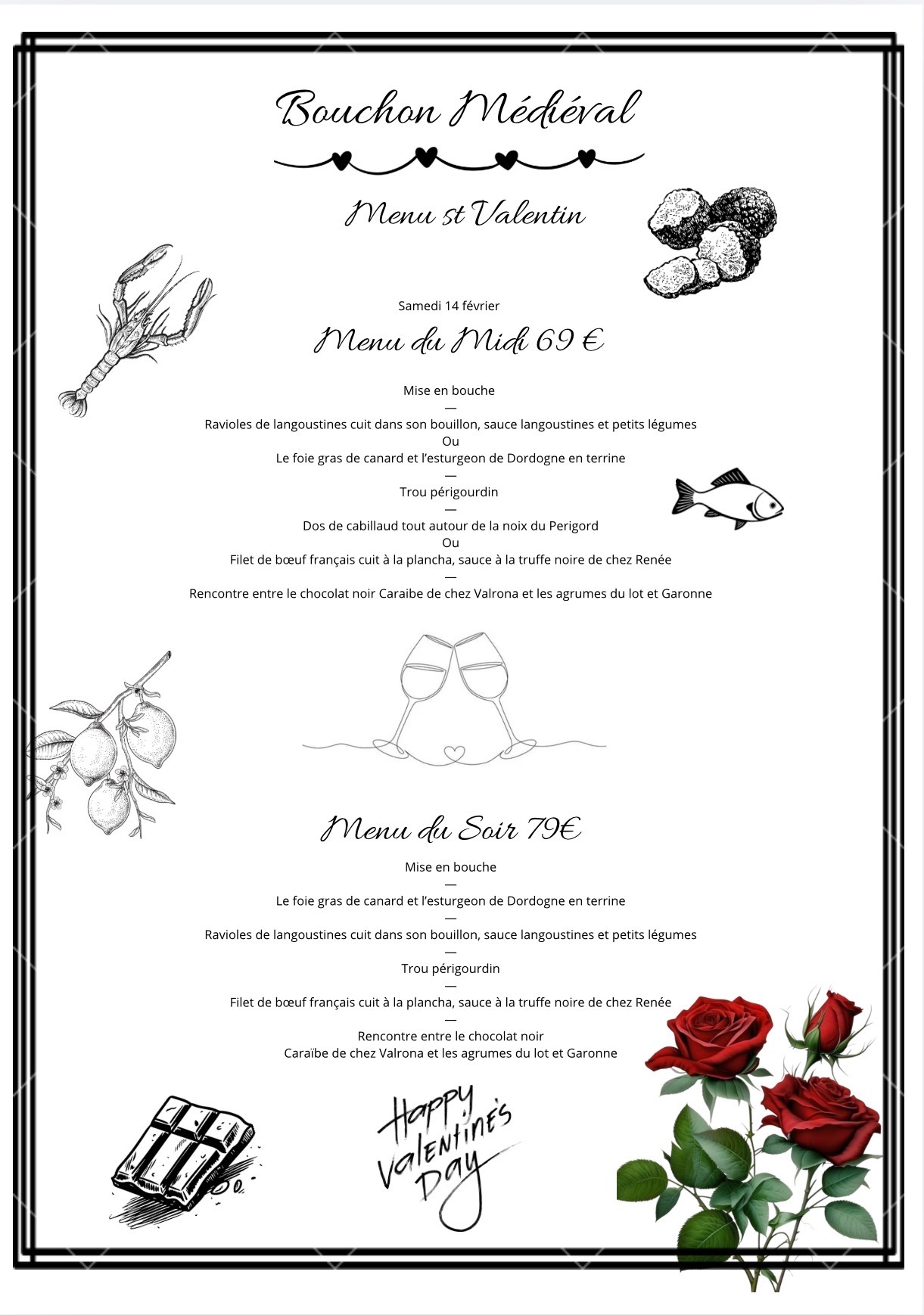 Le Bouchon Médiéval vous propose son menu spécial pour la Saint-Valentin.