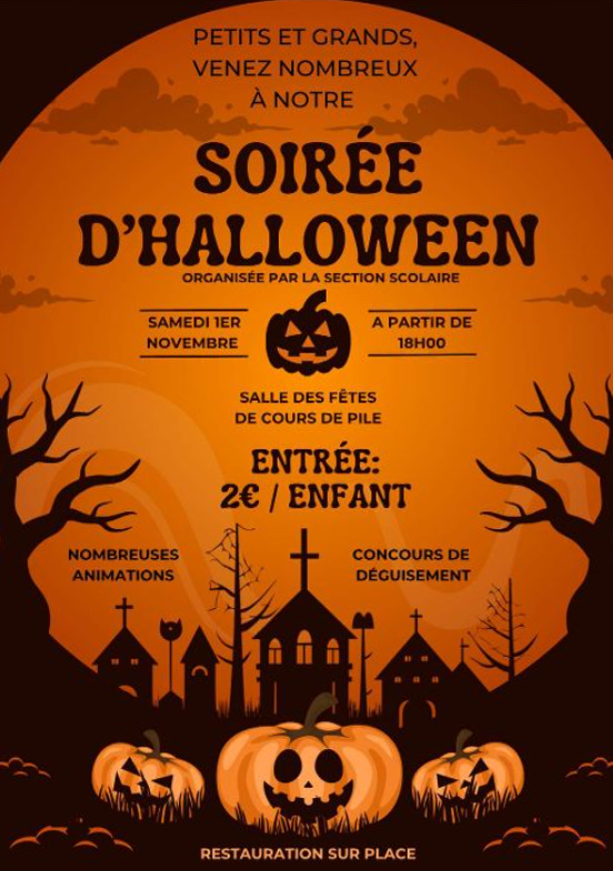 L’Association des Parents d’Élèves de Cours-de-Pile vous invite à sa 3ᵉ grande soirée Halloween !