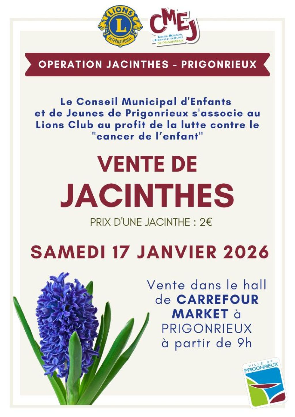Le Conseil Municipal d’Enfants et de Jeunes (CMEJ) de Prigonrieux, en partenariat avec le Lions Club, organise une vente de jacinthes au profit de la lutte contre le cancer des enfants.